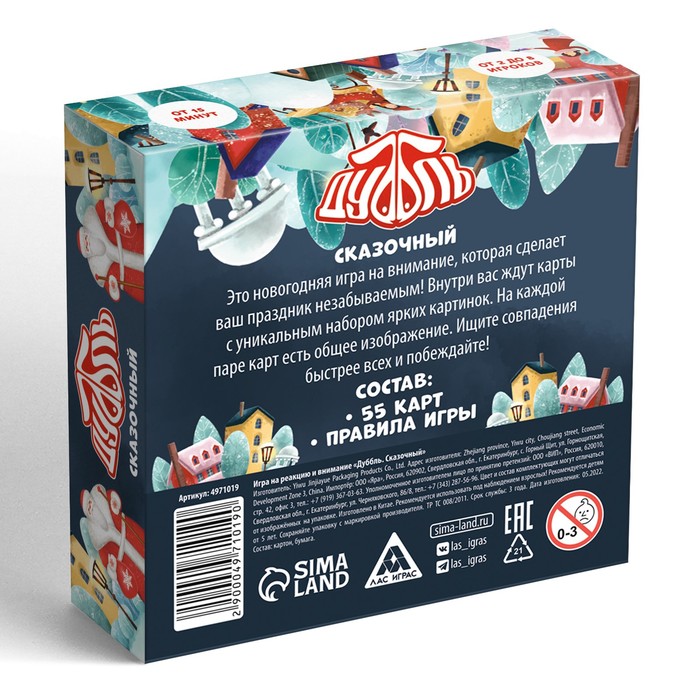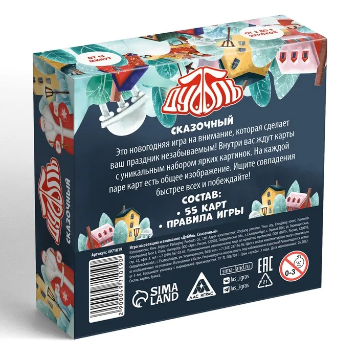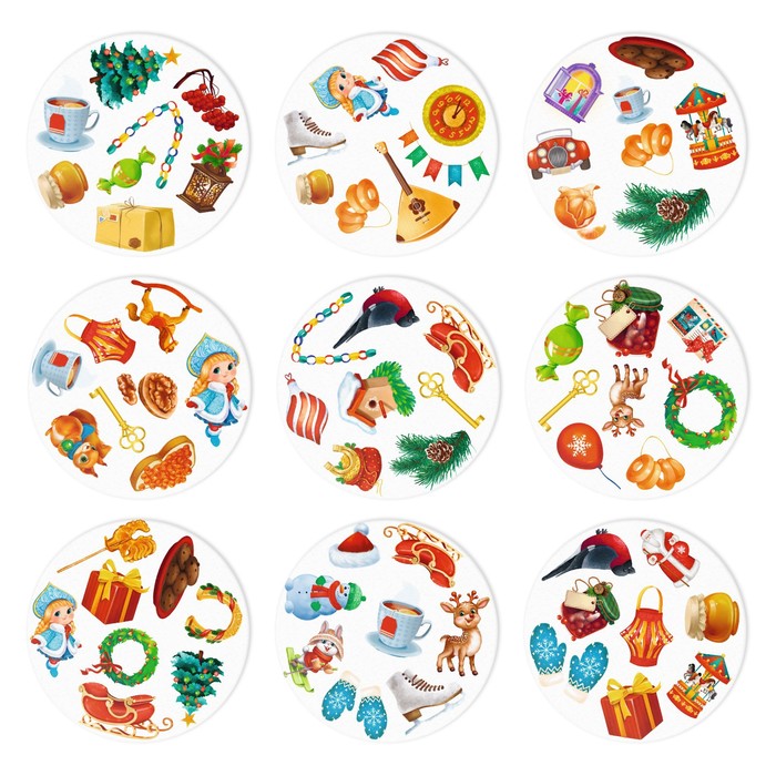 Эта новогодняя игра сделает праздник незабываемым! Внутри вас ждут 55 карт с набором ярких картинок. На каждой паре карт есть общее изображение, и оно только одно. Ищите совпадения быстрее всех и побеждайте!