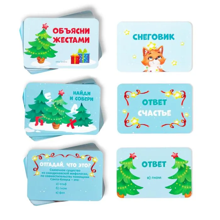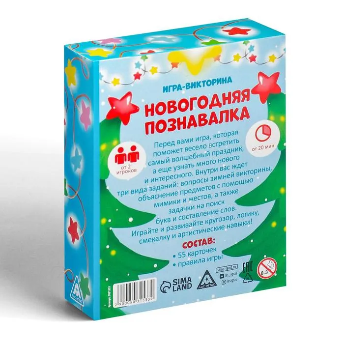 Новогодняя настольная игра-викторина «Новый год: Познавалка», 55 карт, 5+ — Характеристики