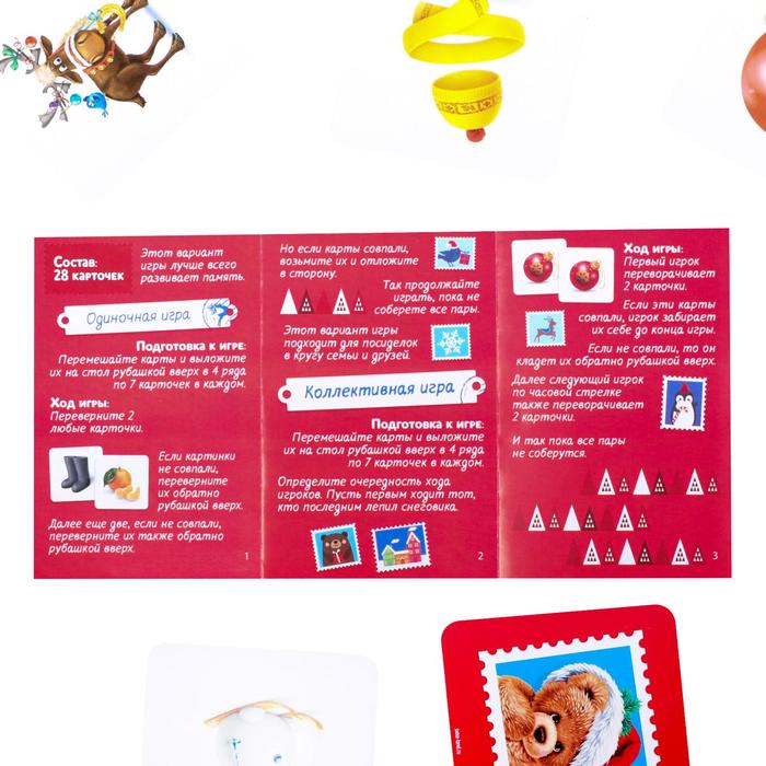 Перед вами всеми любимая игра «Мемо», с которой Новый год и зимние каникулы пройдут весело и интересно. Переворачивайте парные карточки, развивайте внимание и память и побеждайте!