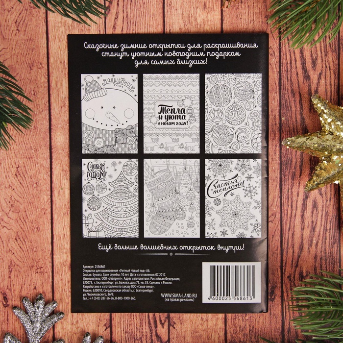 Новогодняя раскраска антистресс, открытки «Уютный Новый год», А6 — Характеристики