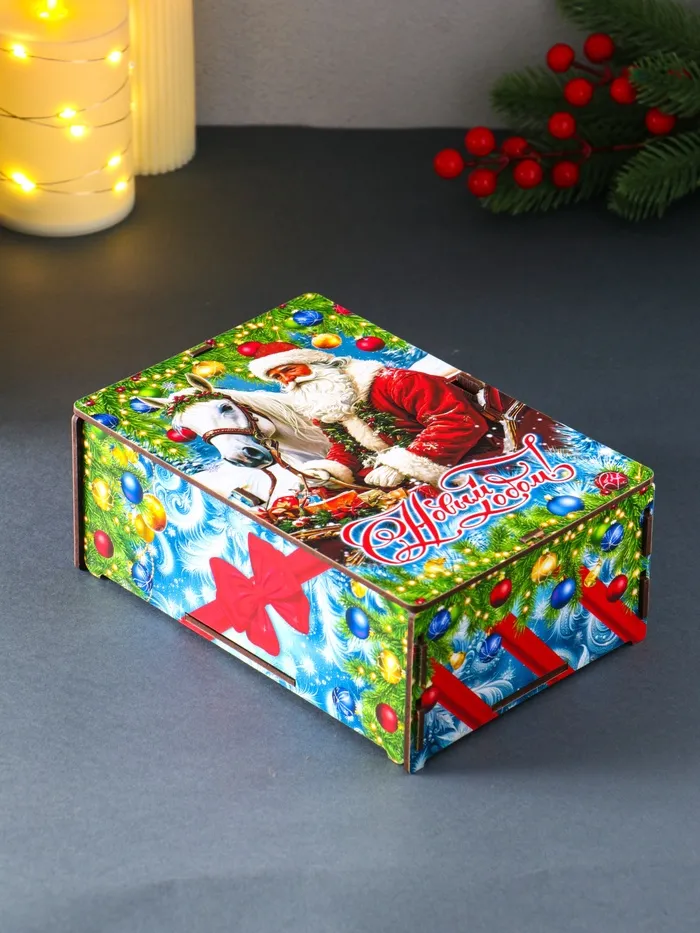 Эта новогодняя шкатулка для сборки своими руками станет тёплым завершением вашего подарка. В собранном виде она превращается в изящный ларец с праздничным рисунком, где Дед Мороз и символ года навевают ощущение чуда. Аккуратно соберите её, наполните конфетами, украшениями или небольшим сувениром — и вы подарите не просто вещь, а момент радости и внимания.