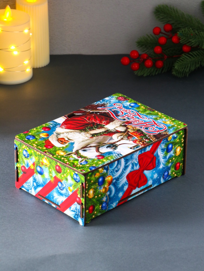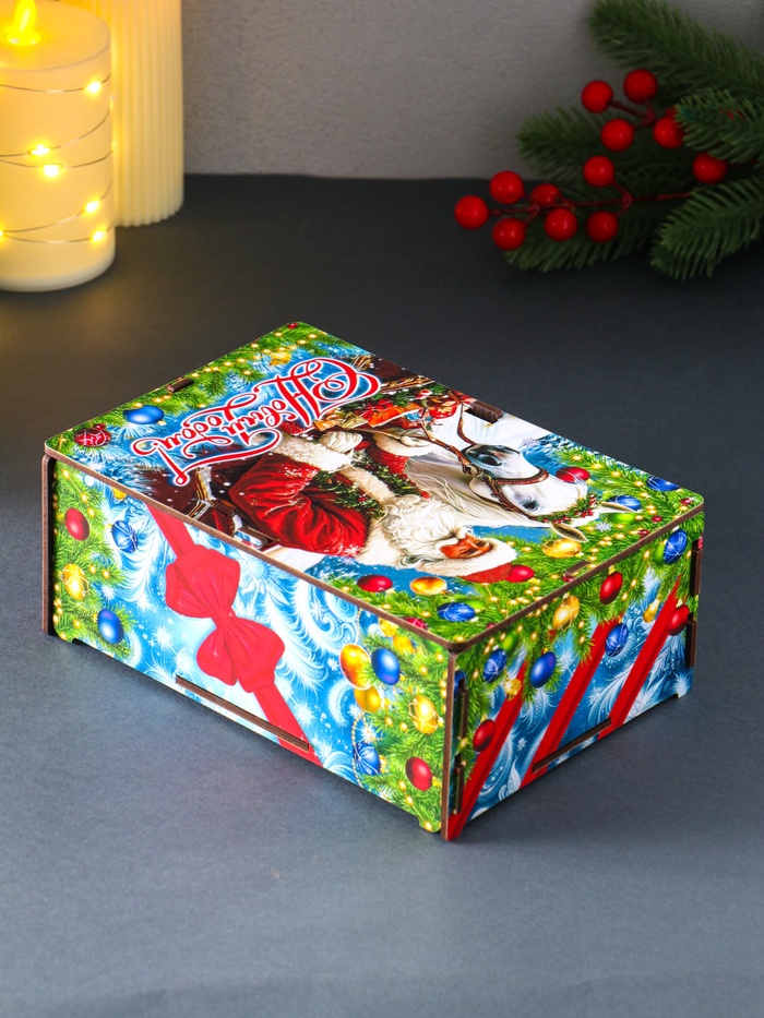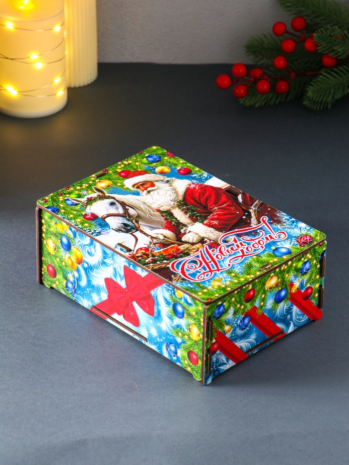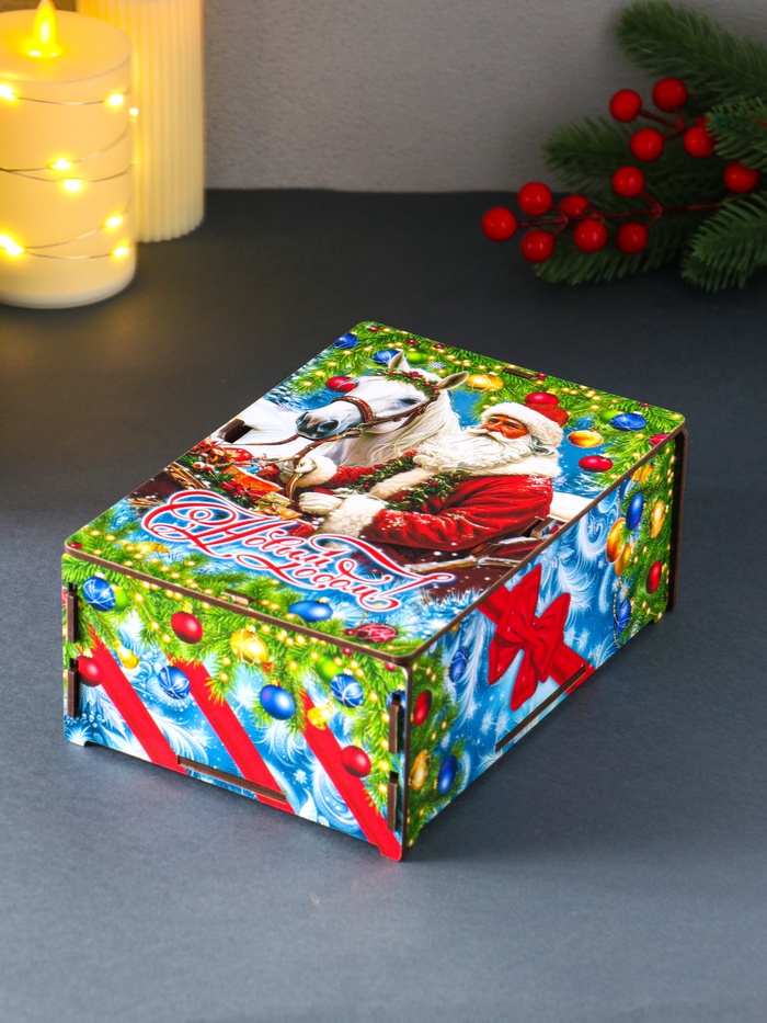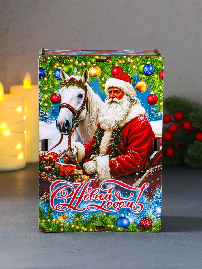 Новогодняя шкатулка подарочная «Дед Мороз и лошадь», для подарков, самосборная, 20×13.6×8 см — Характеристики