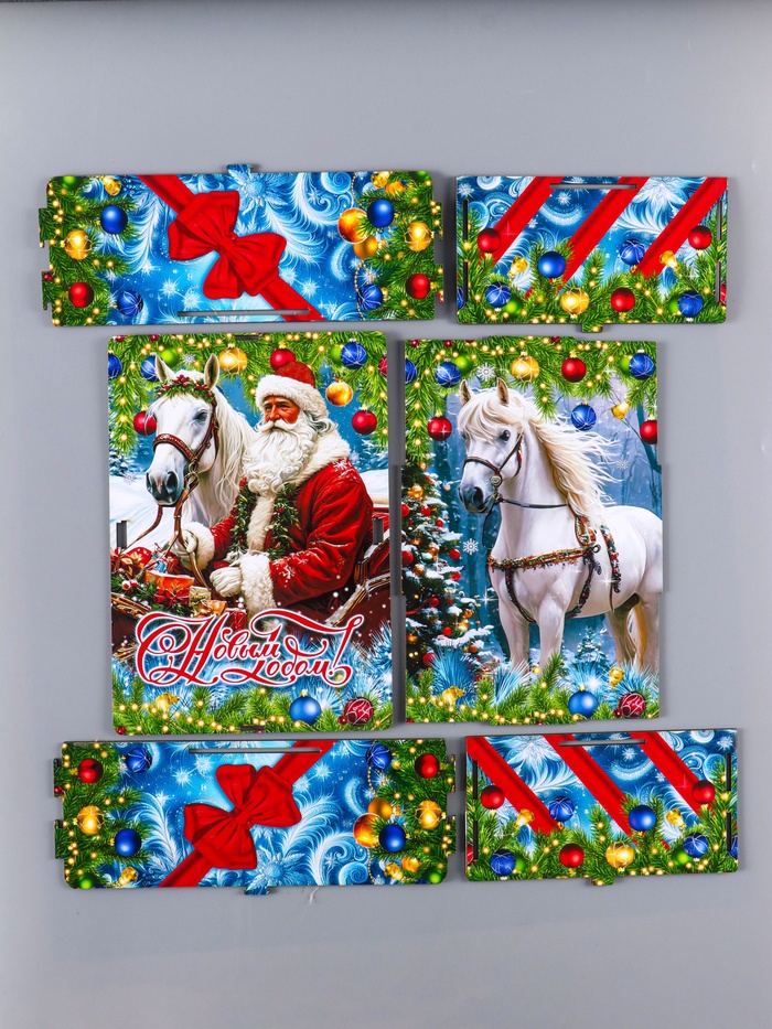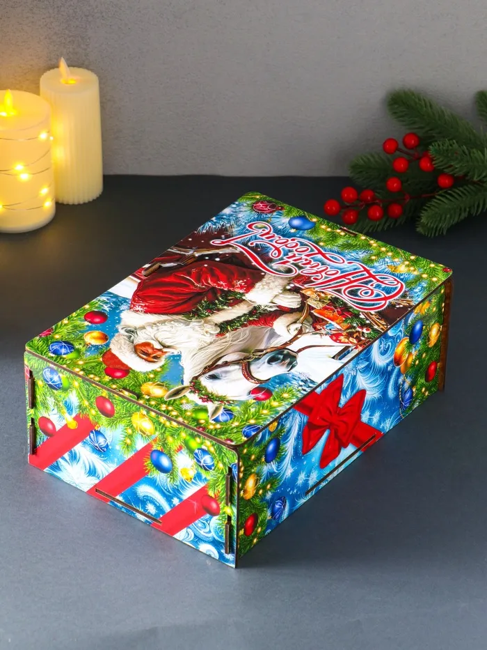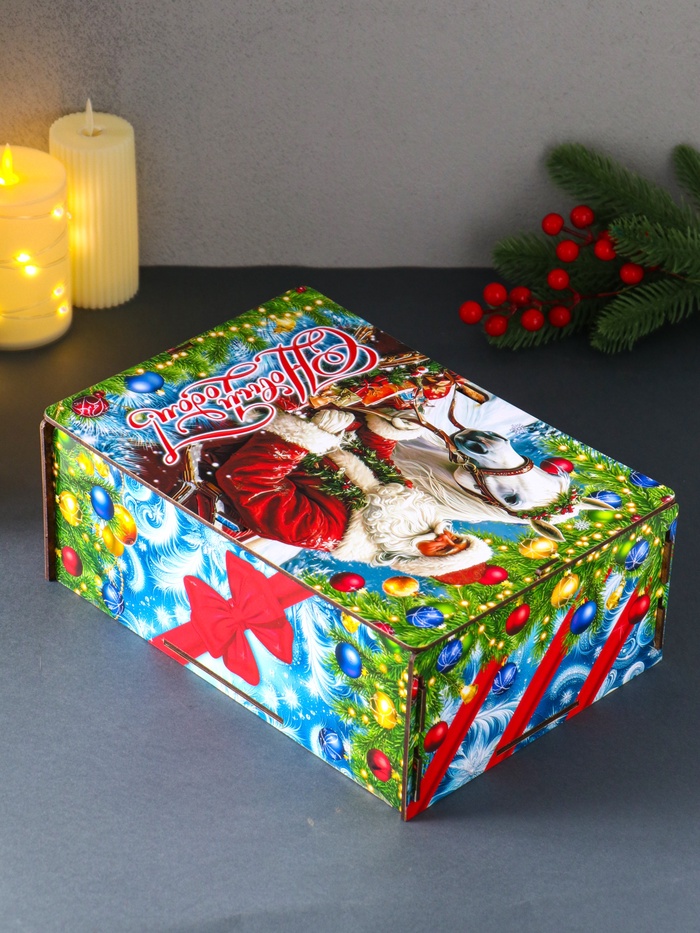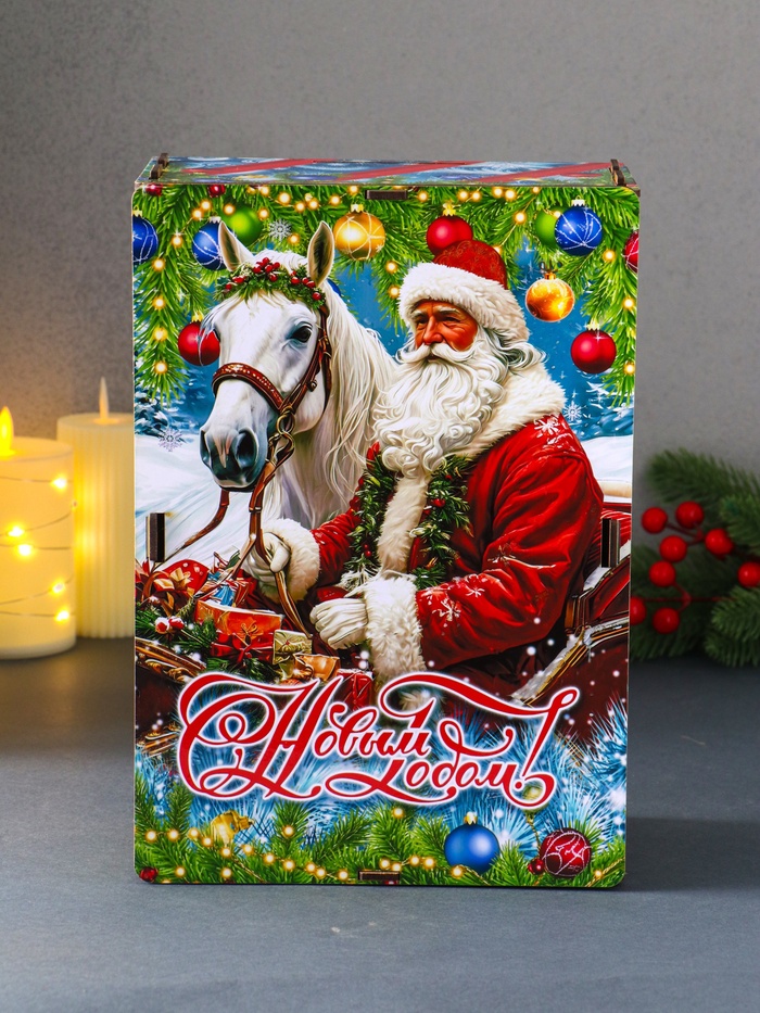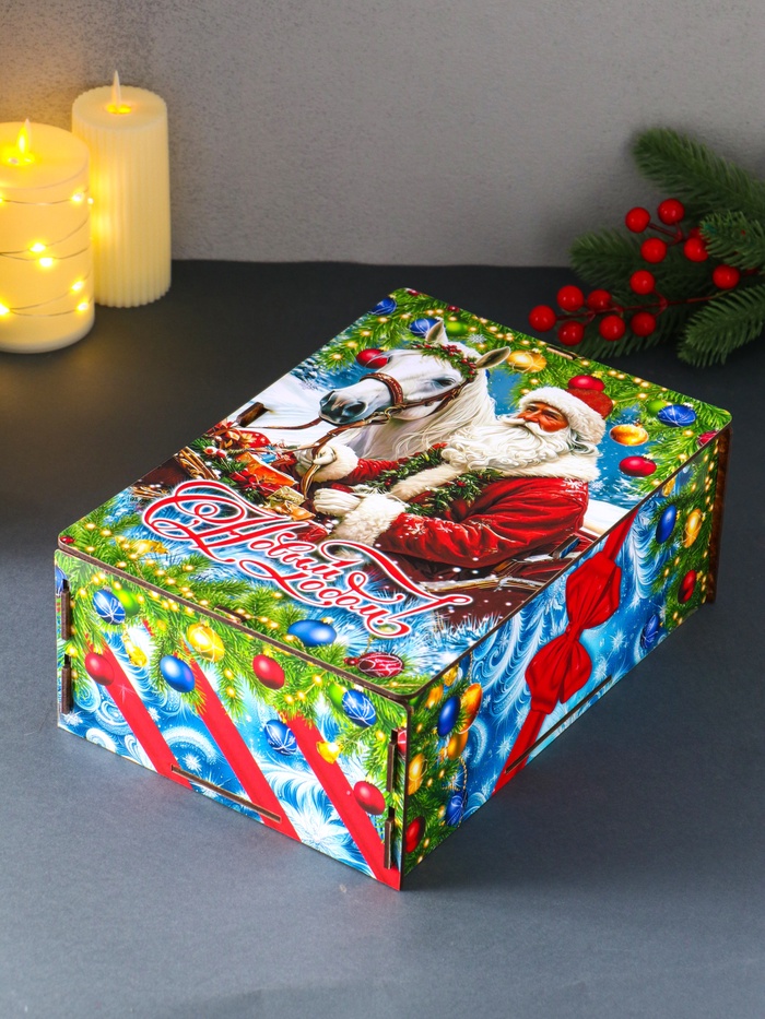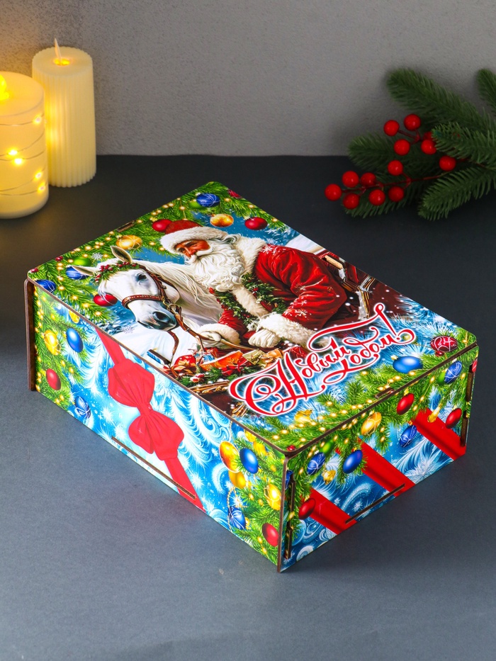 Новогодняя шкатулка подарочная «Дед Мороз и лошадь», для подарков, самосборная, 28×19.5×11 см — Характеристики