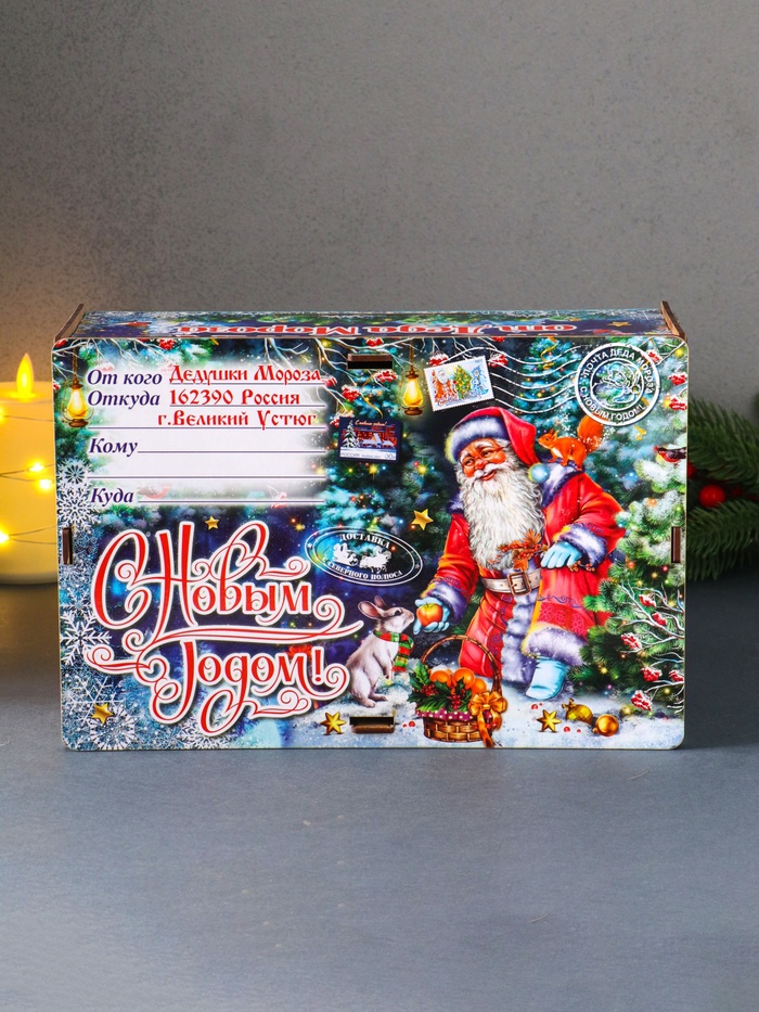 Новогодняя шкатулка подарочная «Дед Мороз и зайка», для подарков, самосборная, 28×19.5×11 см — Характеристики
