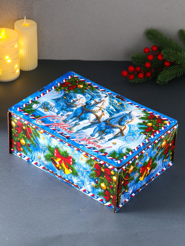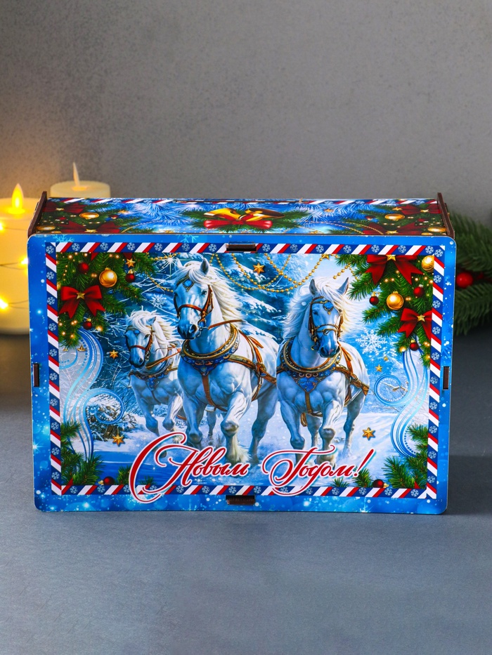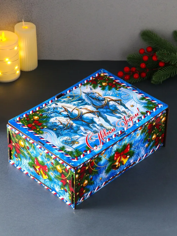 Эта самосборная шкатулка с новогодней тройкой лошадей создаёт особое праздничное настроение. Вы складываете её своими руками, вкладывая в подарок тепло и заботу. Внутри найдётся место для украшений, конфет или небольшого сюрприза, превращая коробку в хранилище для самых ценных мелочей.