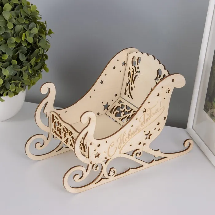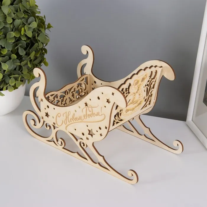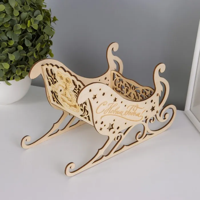 Новогодняя шкатулка-сани для подарков дерево «Змея. Новый год», для конфет, декора, 21×14×10 см — Характеристики