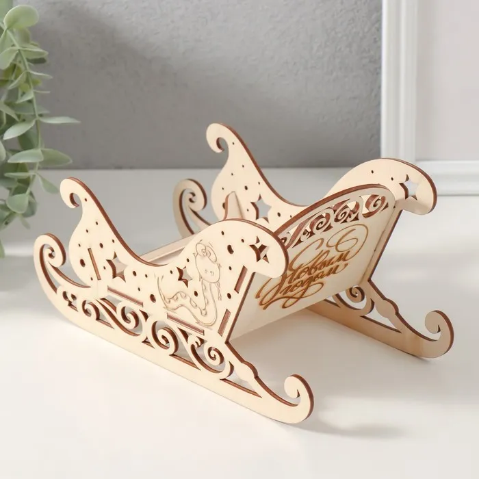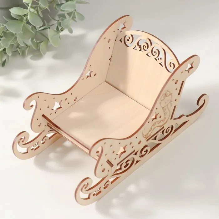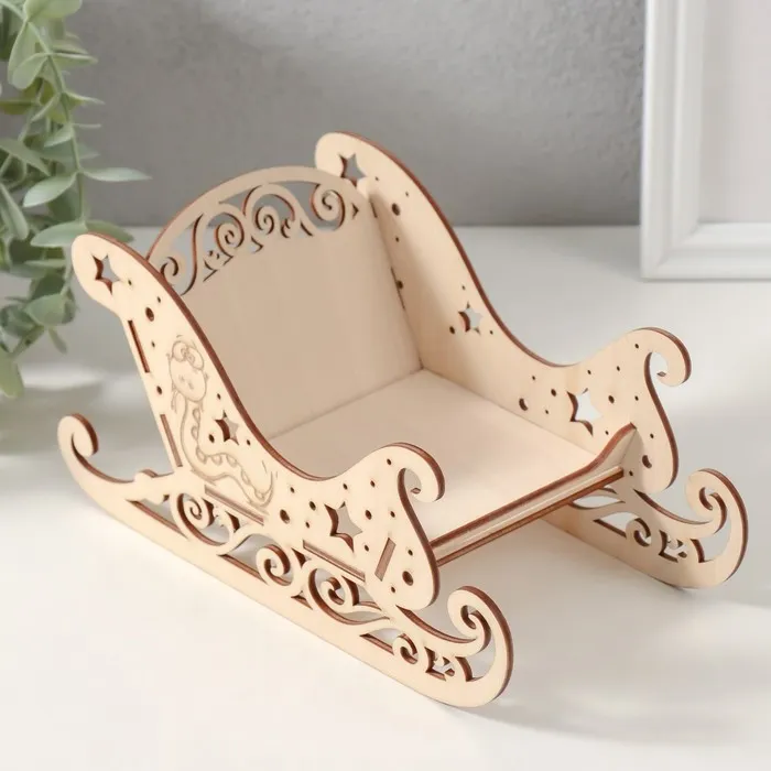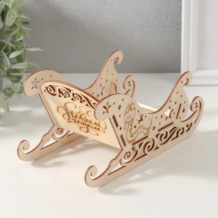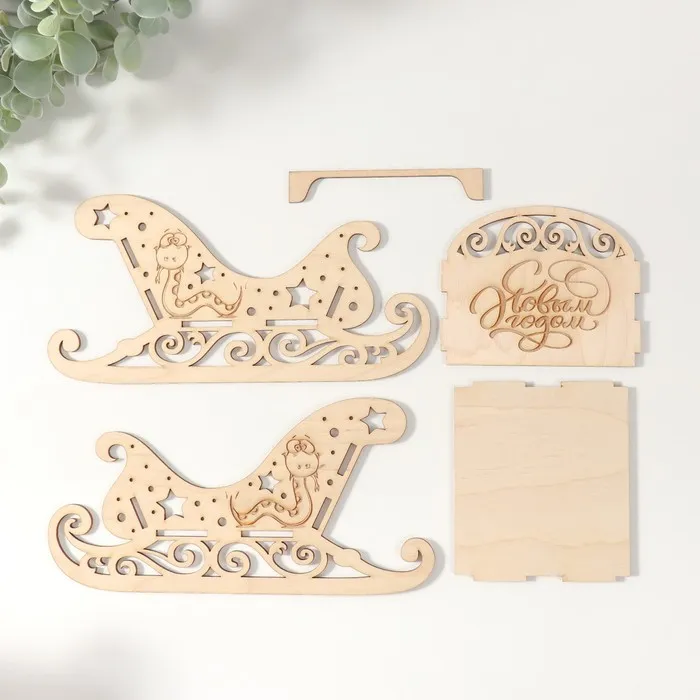Новогодняя шкатулка-сани для подарков дерево «Змея. Звёздочка», для конфет, декора, 21×10×10.5 см (набор 5 деталей) — Характеристики