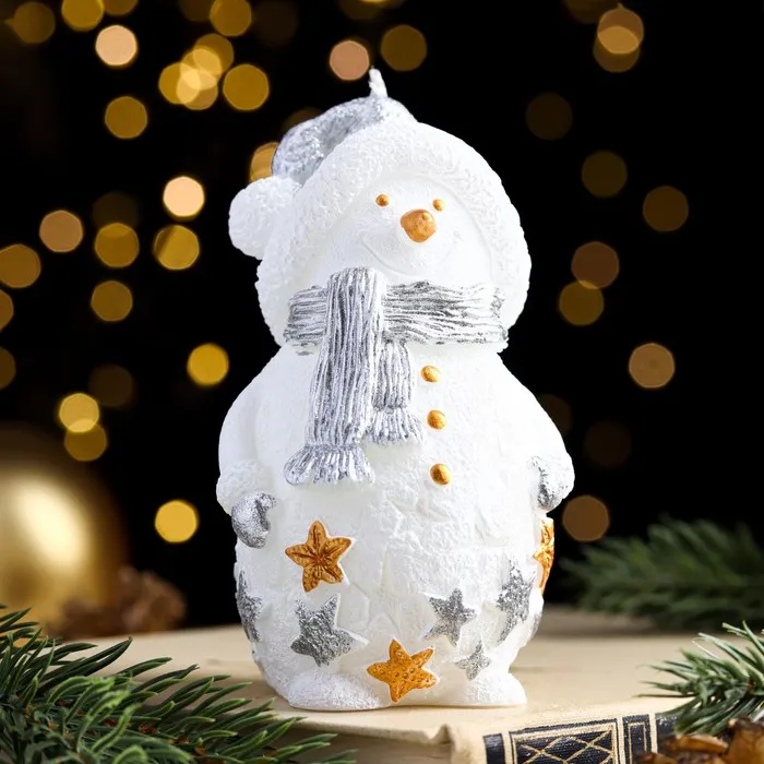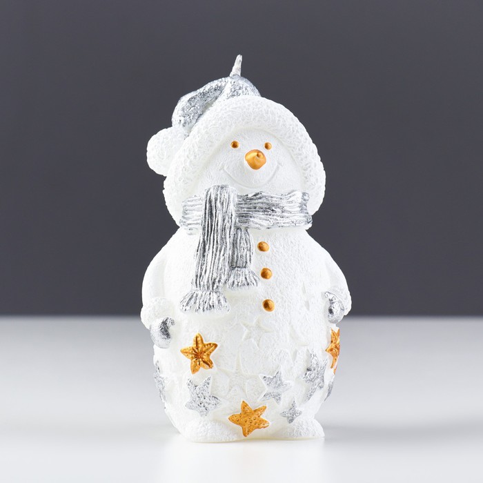 Новогодняя свеча декоративная «Снеговичок», 6×5.5×11 см, белый