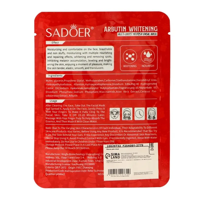 Новогодняя тканевая маска для лица с арбутином, увлажняющая — Характеристики