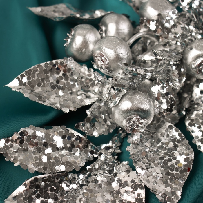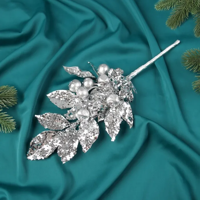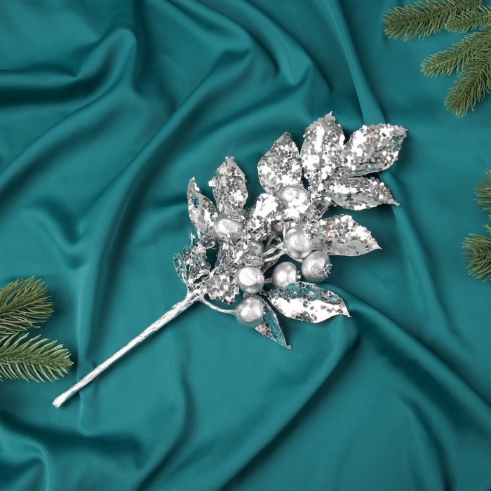 Новогодняя ветка декоративная «Зимнее волшебство. Грация», пластик, веточка ягоды, 30х12 см, серебро — Характеристики