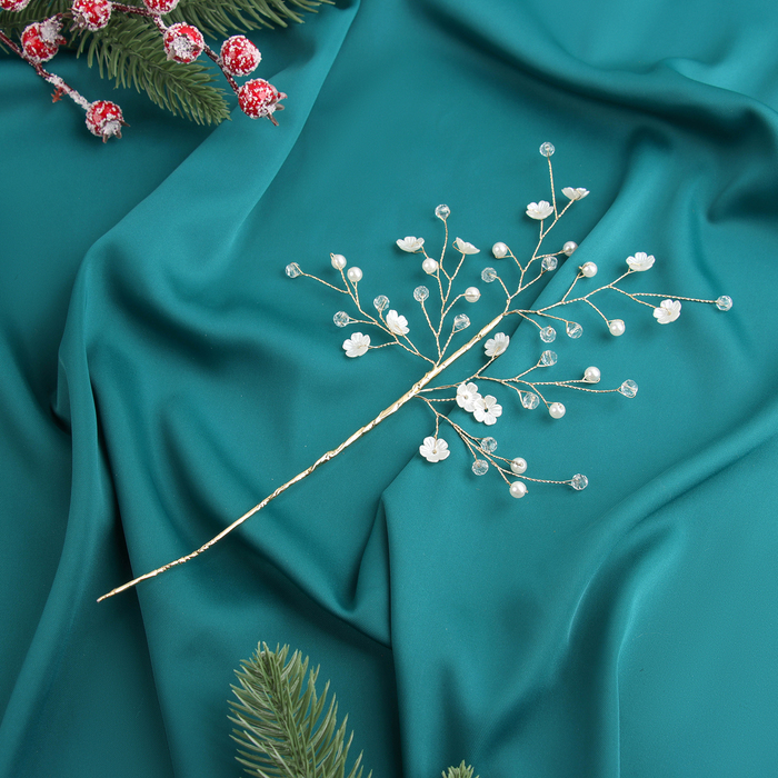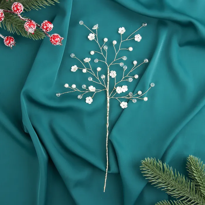 Новогодняя ветка декоративная «Зимнее волшебство. Хрустальная сказка», пластик, 26 см, веточка с цветочками — Характеристики