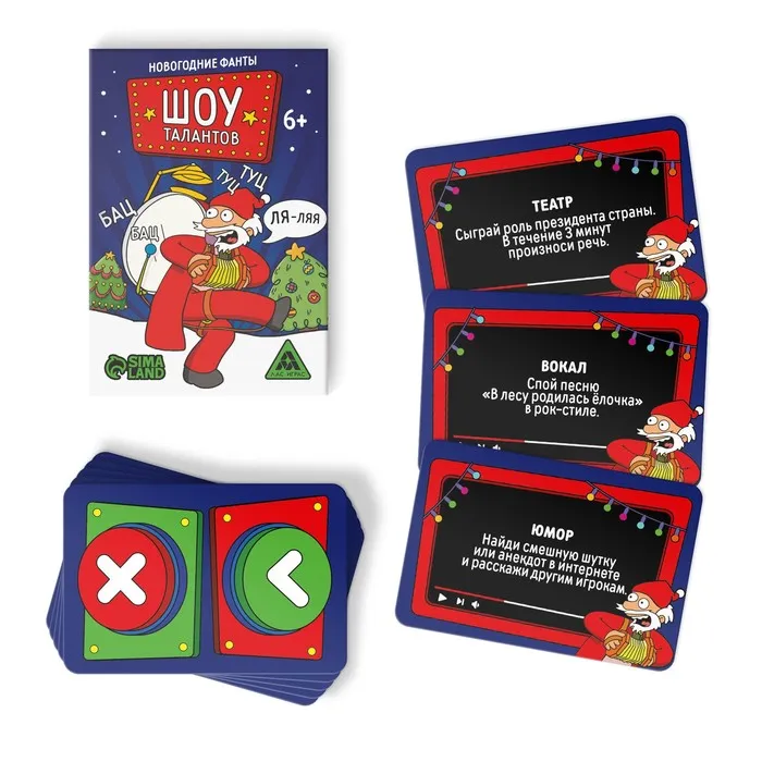Если выступление нравится, они показывают рубашку своей карты зелёной кнопкой вверх, если нет-красной. Если зелёных больше-игрок справился с заданием, если больше красных – тянет новую карту, фант с которой он будет выполнять в следующий раз.