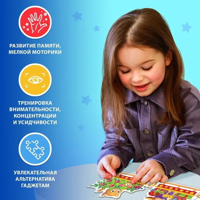 Сборка пазла помогает развивать важные навыки: логическое мышление, внимательность и мелкую моторику. Поиск правильного места для каждой детали тренирует способность различать цвета и находить связь между частью и целым. Это занятие особенно актуально в преддверии Нового года, когда хочется совместить развлечение с обучением.