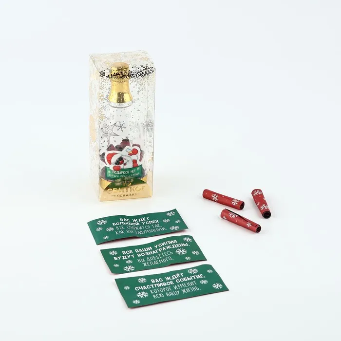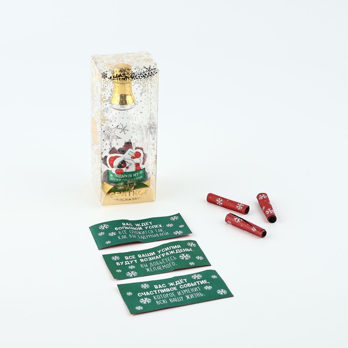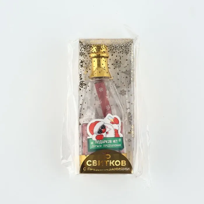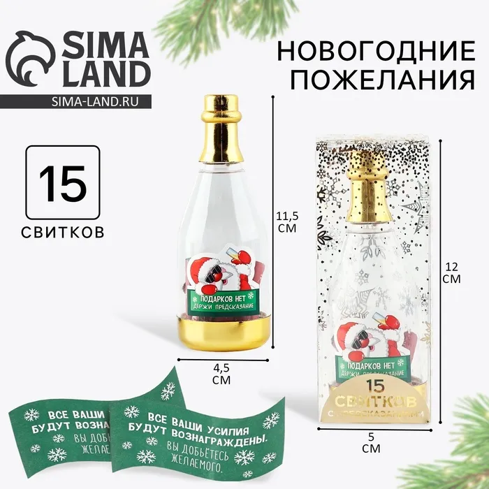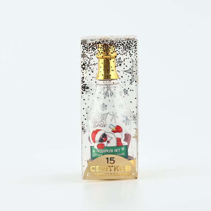 Новогодние пожелания в бутылке «Новый год: Подарков нет, держи предсказание», 15 свитков, 12×5 см — Характеристики