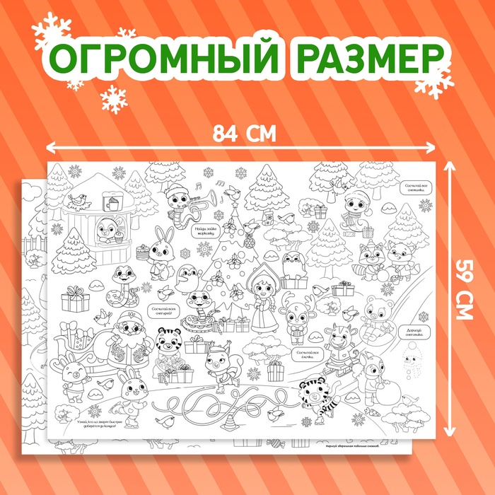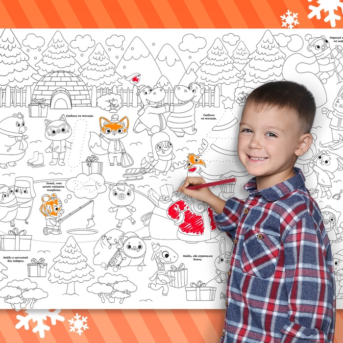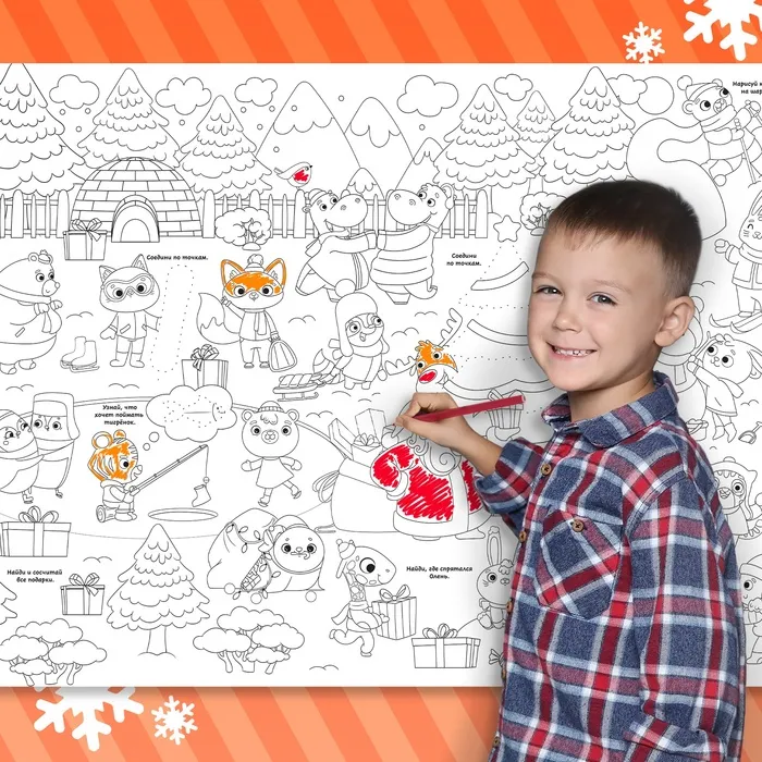 Раскраска-гигант набор «Я рисую Новый год» — это настоящий простор для детской фантазии! Ведь внутри не просто картинки, а настоящий сюжет. Большой плакат могут раскрашивать несколько ребят одновременно, выполняя весёлые задания.