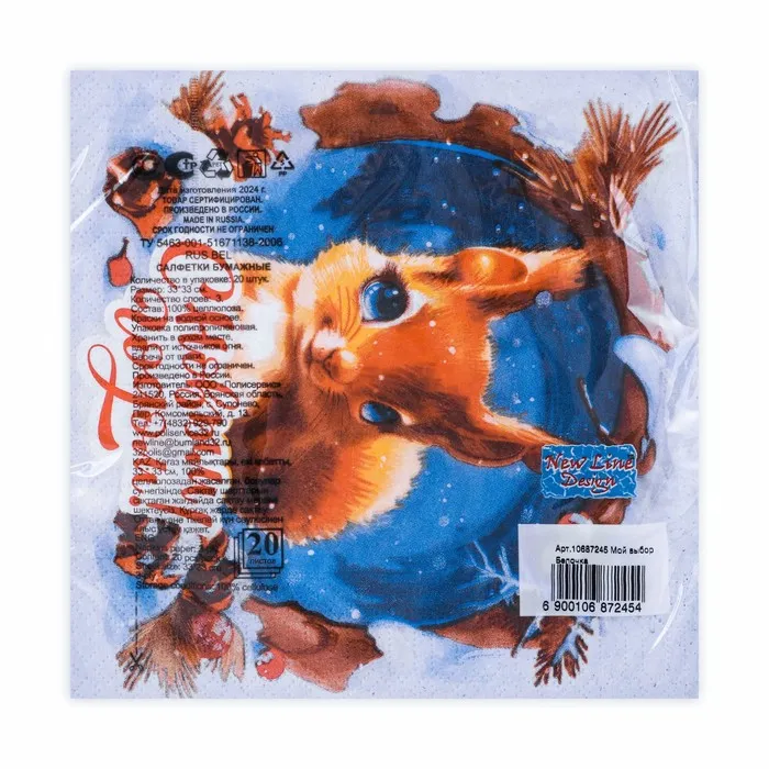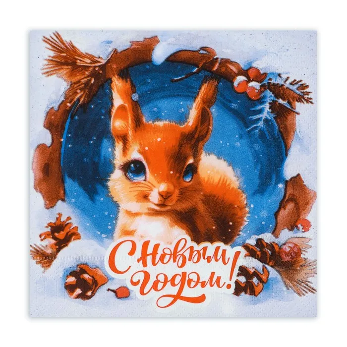 Новогодние бумажные салфетки с рисунком "Белочка" - это отличное украшение для вашего праздничного новогоднего стола. Идеально подойдут как для сервировки, так и в качестве декора и украшения как в домашних условиях, так и на больших праздничных мероприятиях. Салфетки с уникальным рисунком будут хорошим подарком для родных и близких. Данные салфетки можно использовать так же для декупажа и коллажей.
