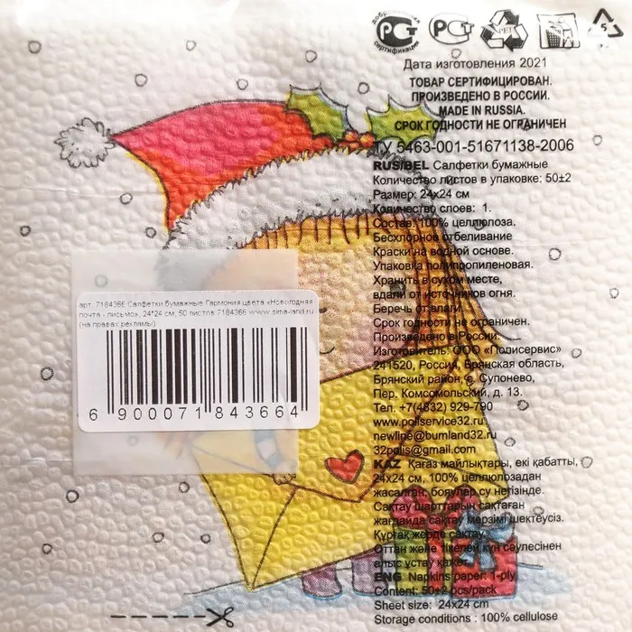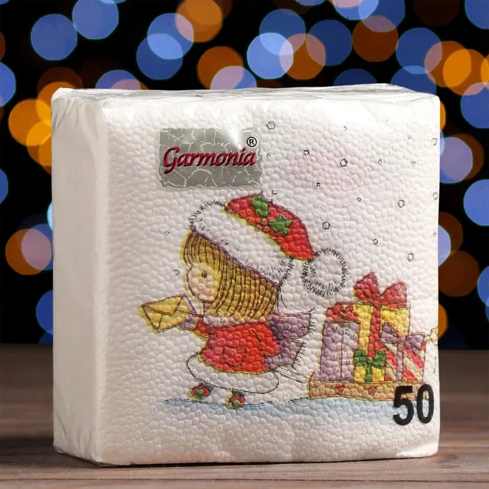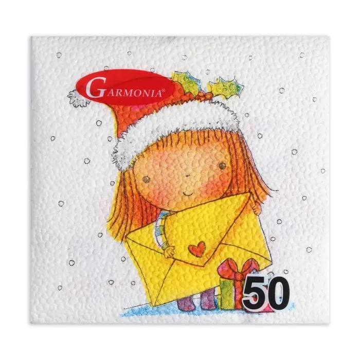 Новогодние салфетки бумажные Гармония цвета «Новогодняя почта - письмо», 24х24 см, 50 шт — Характеристики