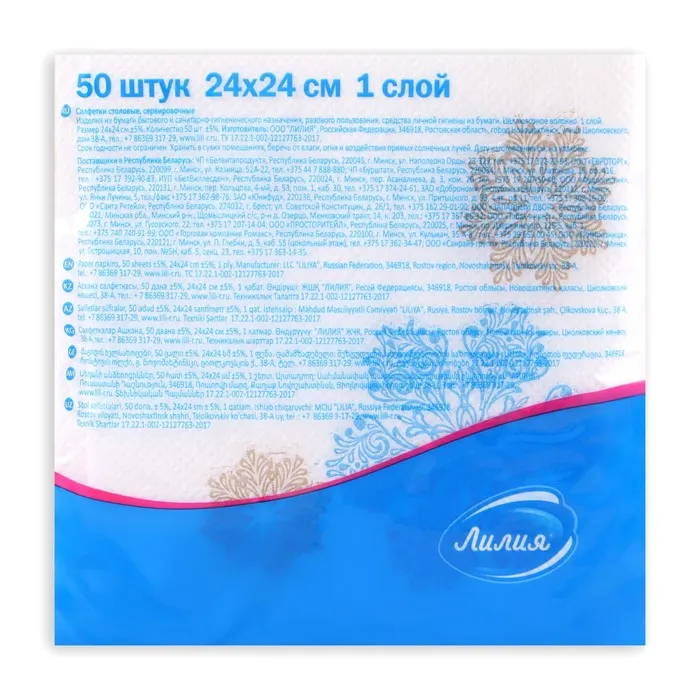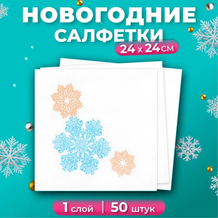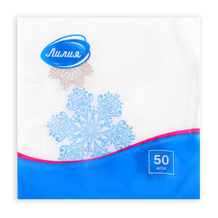 Новогодние салфетки бумажные Лилия «Вальс снежинок», 1 слой, 24х24 см, 50 шт — Характеристики
