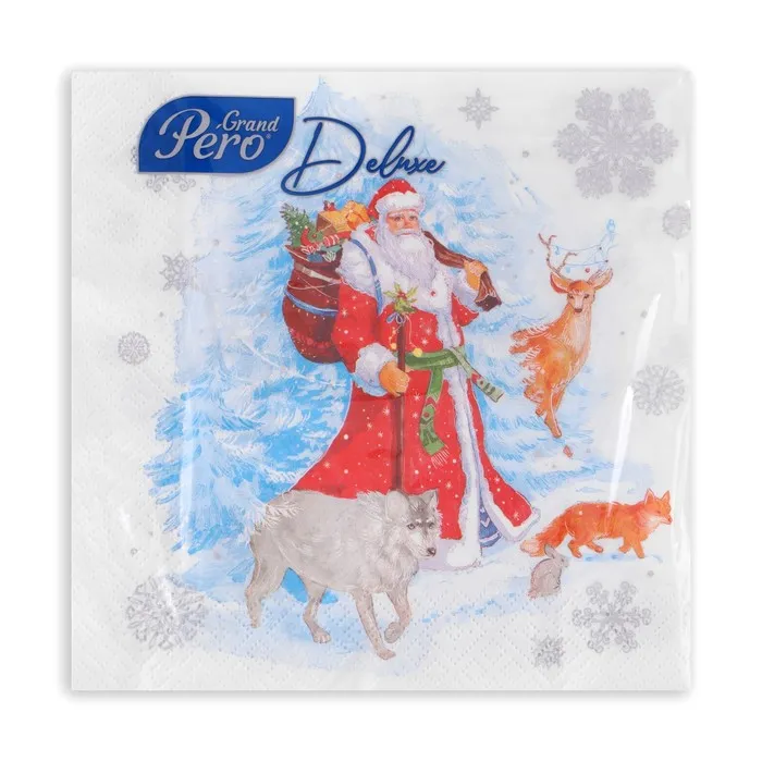 Если вы хотите, красиво и со вкусом украсить новогодний стол — салфетки с тематическим принтом обязательно займут на нём своё почётное место. Эта деталь придётся по душе всем гостям, которые непременно почувствуют праздничную и уютную атмосферу. Качественные трехслойные бумажные салфетки изготовлены из 100% целлюлозы.