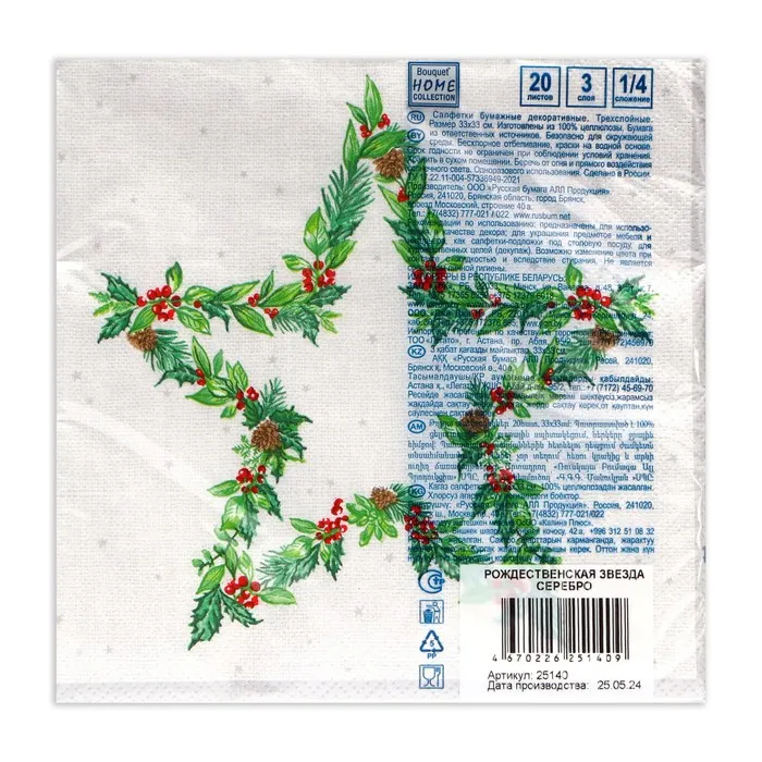 Не упустите возможность сделать ваш новогодний стол ещё более уютным и стильным с нашими новогодними салфетками!