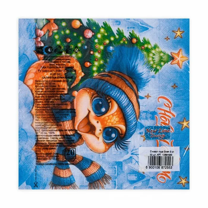 Новогодние бумажные салфетки с рисунком "Символ года Змея" - это отличное украшение для вашего праздничного новогоднего стола. Идеально подойдут как для сервировки, так и в качестве декора и украшения как в домашних условиях, так и на больших праздничных мероприятиях. Салфетки с уникальным рисунком будут хорошим подарком для родных и близких. Данные салфетки можно использовать так же для декупажа и коллажей.
