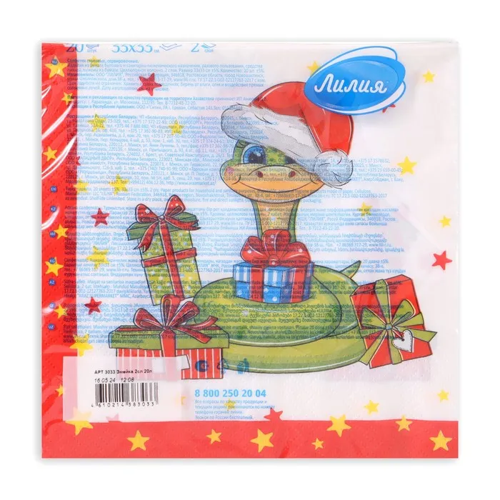 Новогодние салфетки бумажные «Змейка», 2 слоя, 33×33 см, 20 шт. — Характеристики