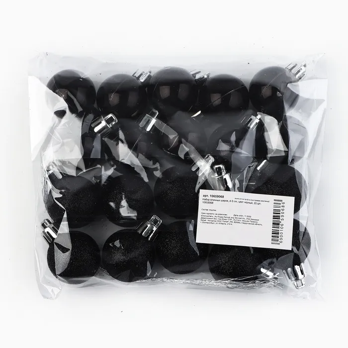 Новогодние шары ёлочные, d=3 см, 20 шт., чёрные — Характеристики