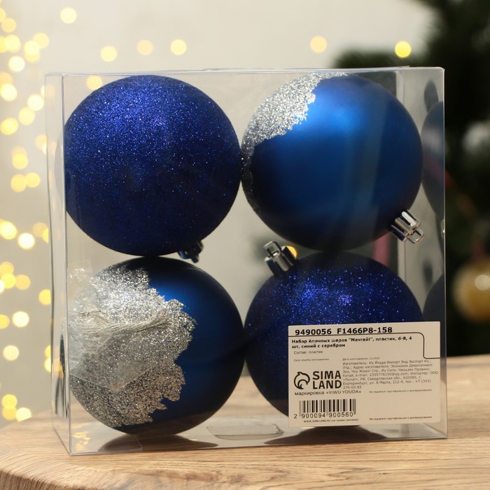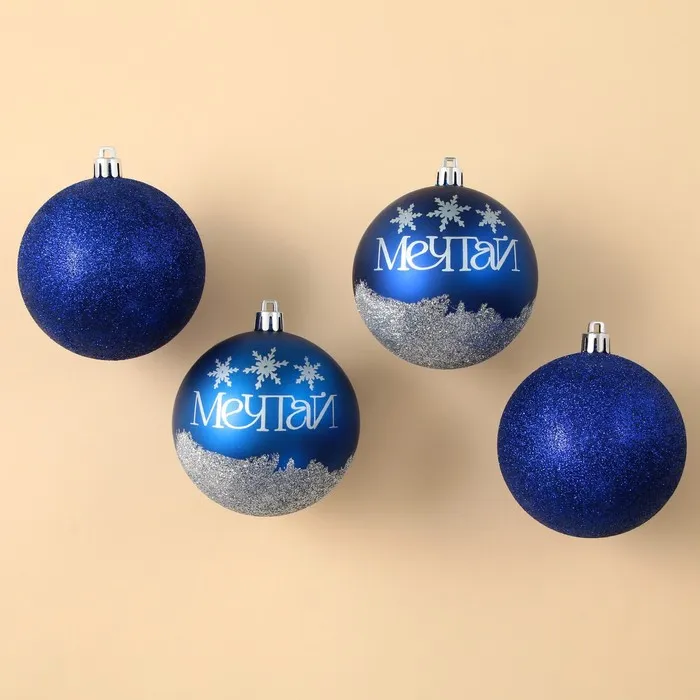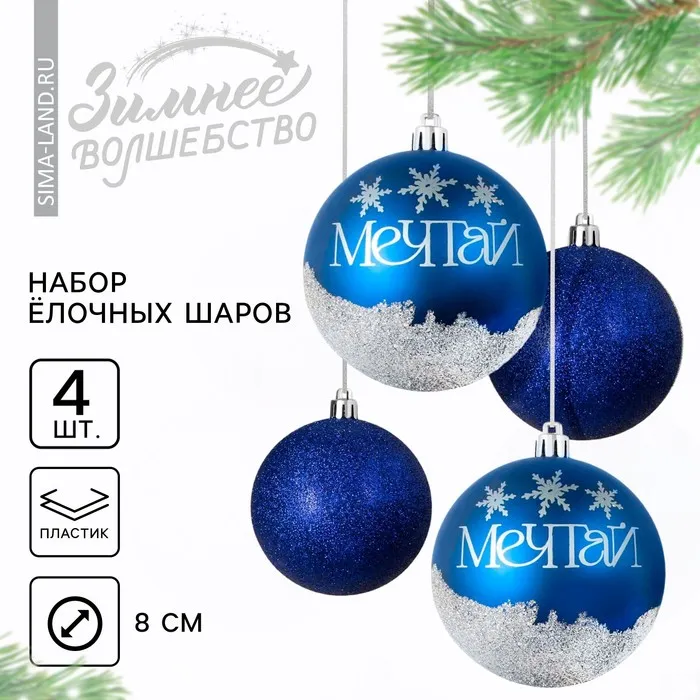Новогодние шары ёлочные «Мечтай!», пластик, d=8, 4 шт., синие — Характеристики
