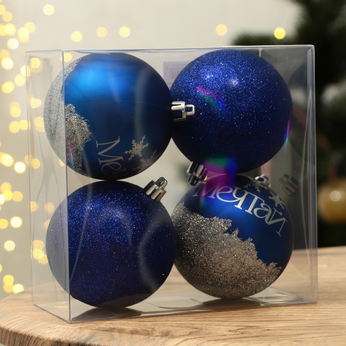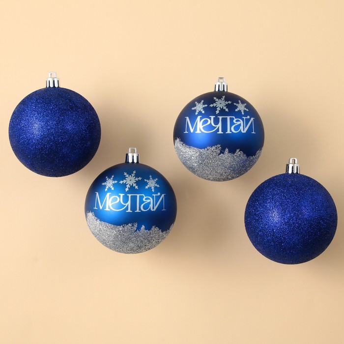 Новогодние шары ёлочные «Мечтай!», пластик, d=8, 4 шт., синие