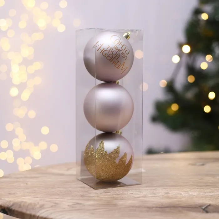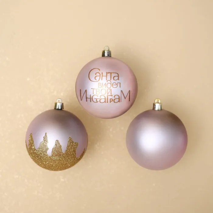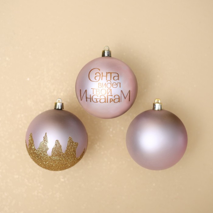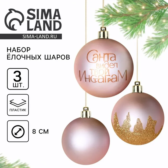 Новогодние шары ёлочные «Санта видел твой Инстаграм», пластик, d=8, 3 шт., розовые — Характеристики