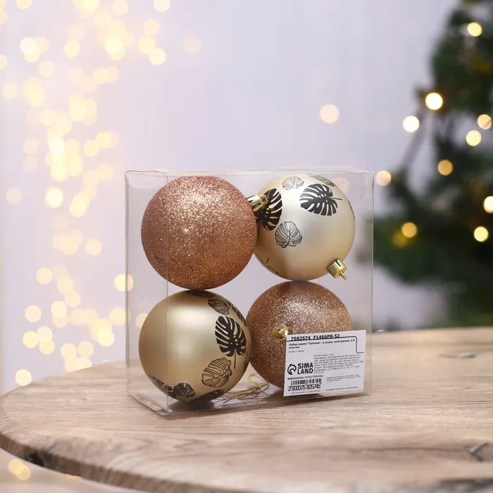 Новогодние шары ёлочные «Тропики», пластик, d=8, 4 шт., жемчужные — Характеристики