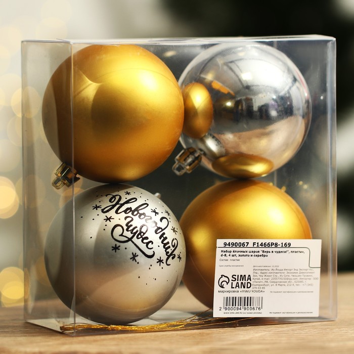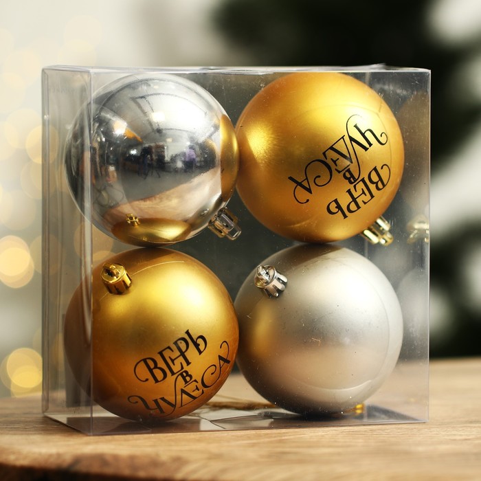 Новогодние шары ёлочные «Верь в чудеса!», пластик, d=8, 4 шт., золотой, серебристый — Характеристики