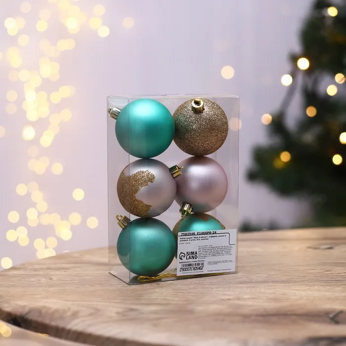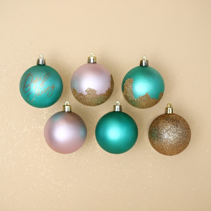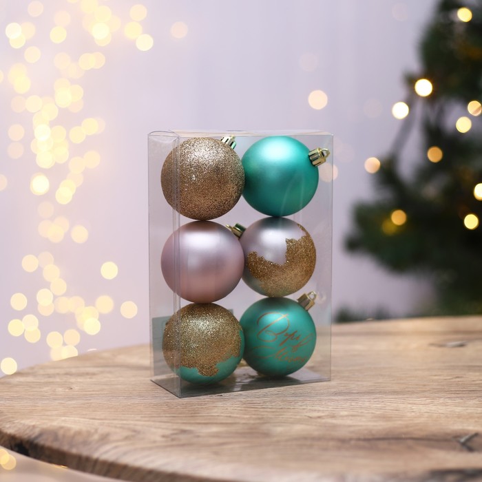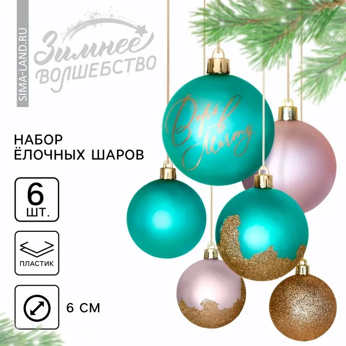 Новогодние шары ёлочные «Верь в мечту!», пластик, d=6, 6 шт., тиффани, золотой и розовый — Характеристики