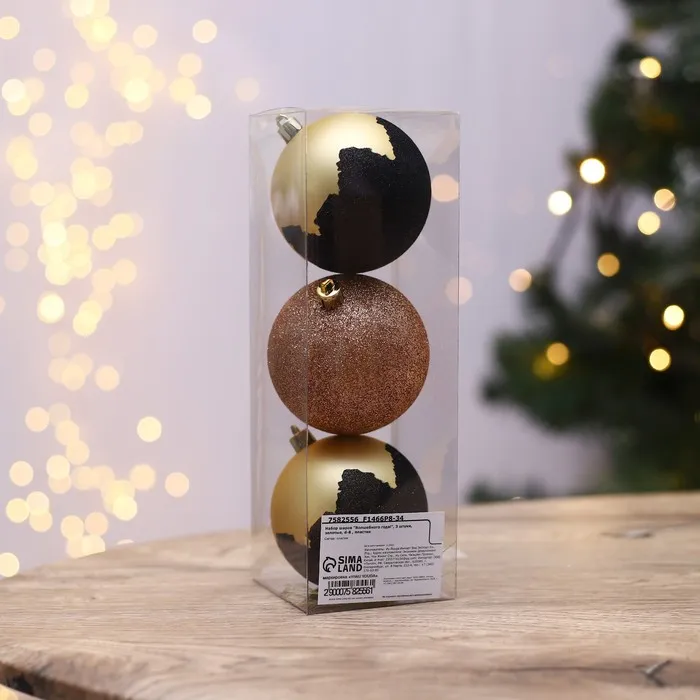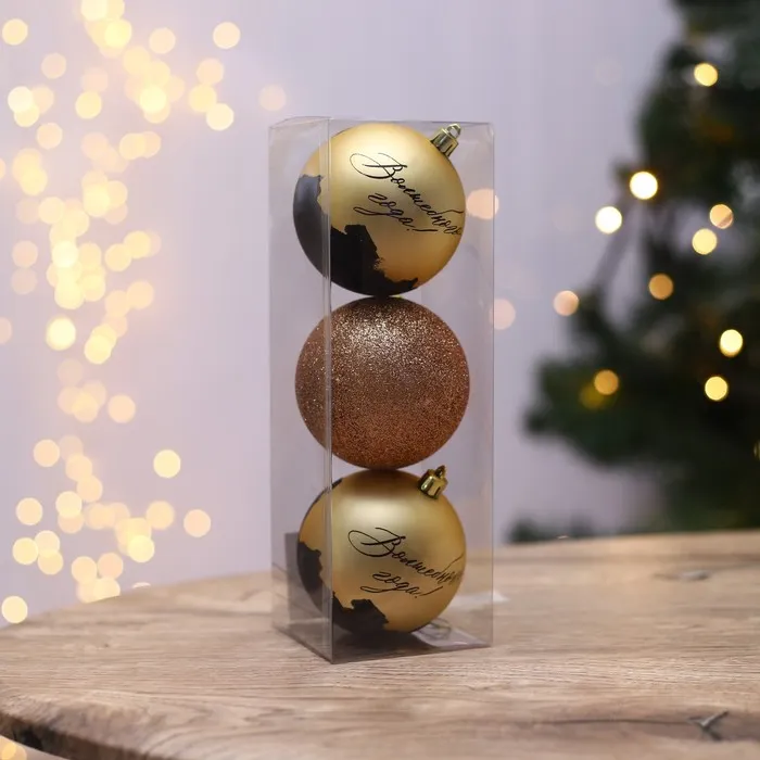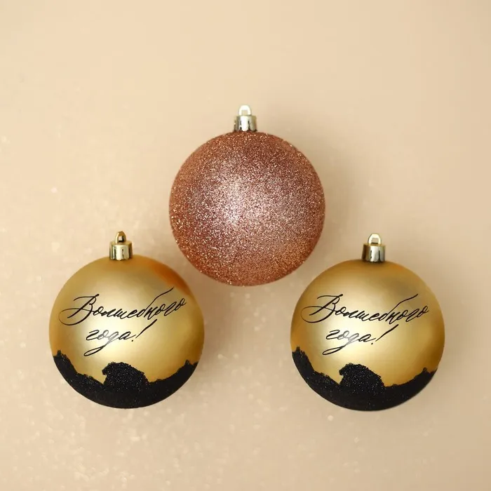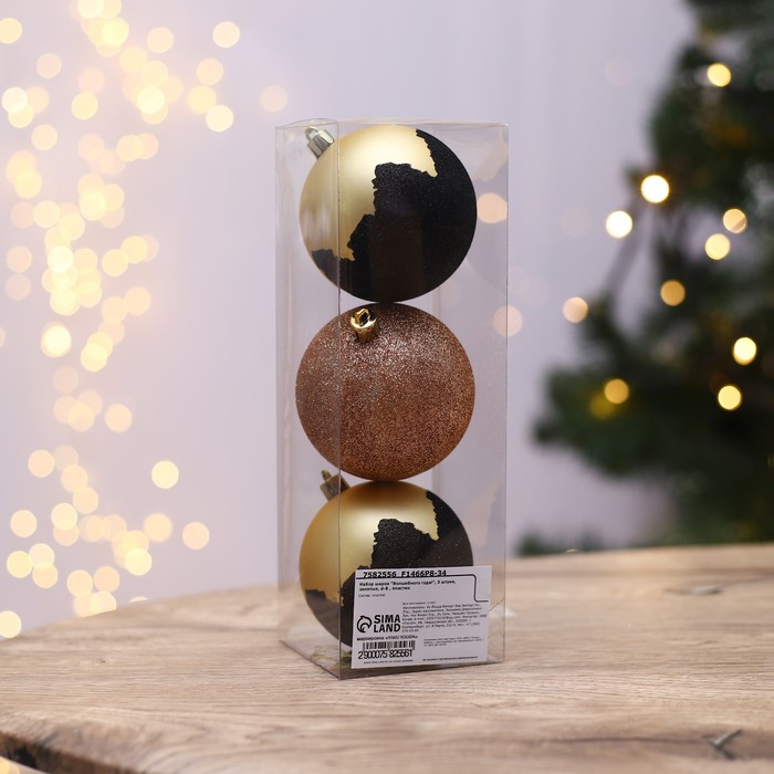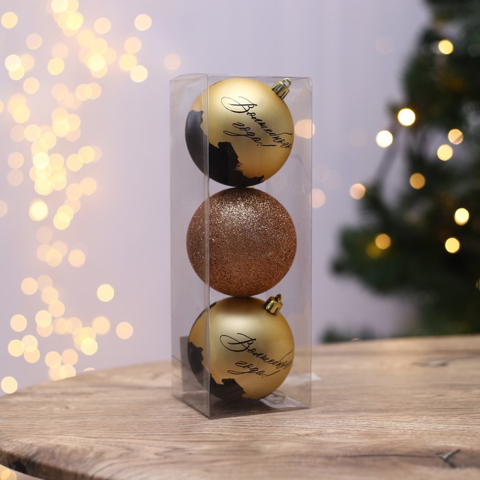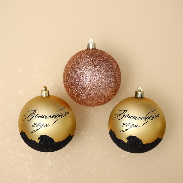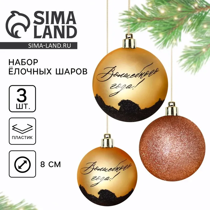 Новогодние шары ёлочные «Волшебного года!», пластик, d=8, 3 шт., золотые — Характеристики