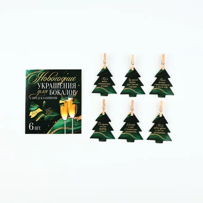 Новогодние украшения для бокалов на Новый год с предсказаниями, ёлочки, 4,1 х 5 см, 6 шт.