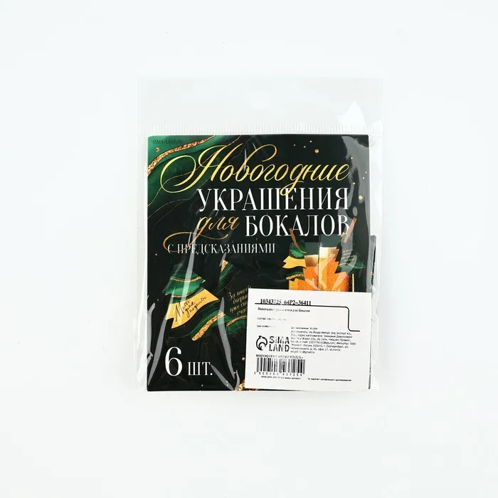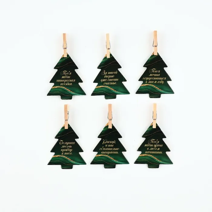 Новогодние украшения для бокалов на Новый год с предсказаниями, ёлочки, 4,1 х 5 см, 6 шт. — Характеристики