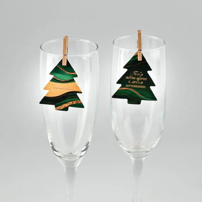 Новогодние украшения для бокалов на Новый год с предсказаниями, ёлочки, 4,1 х 5 см, 6 шт.