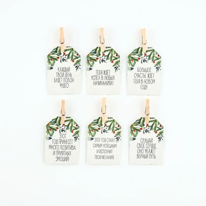 Новогодние украшения для бокалов на Новый год с предсказаниями, шильдики, 3,5 х 5 см, 6 шт. — Характеристики