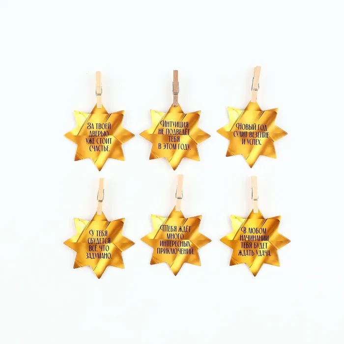 Новогодние украшения для бокалов на Новый год с предсказаниями, звёздочки, 5 х 5 см, 6 шт. — Характеристики