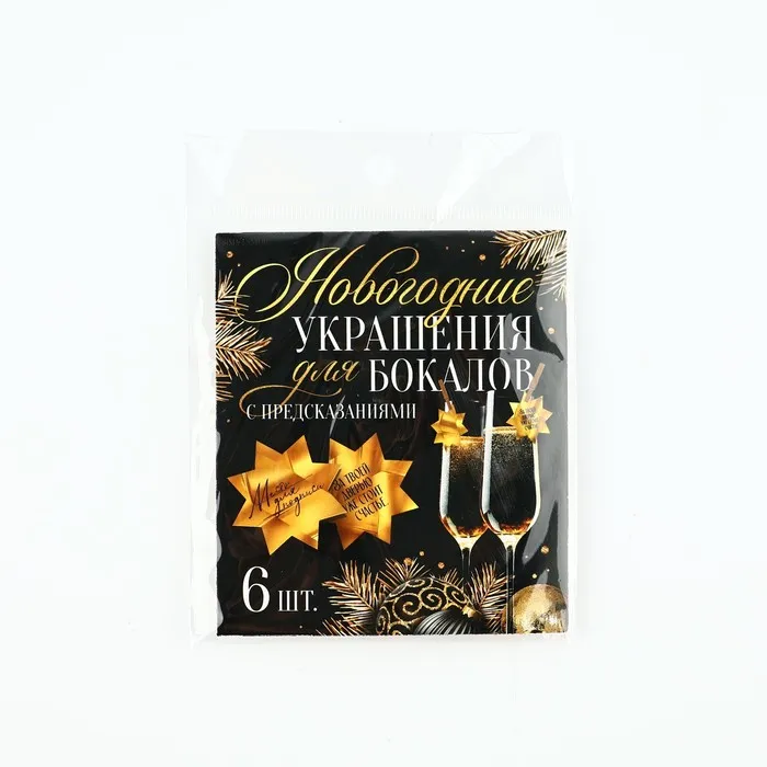Новогодние украшения для бокалов на Новый год с предсказаниями, шильдики, 3,5 х 5 см, 6 шт.