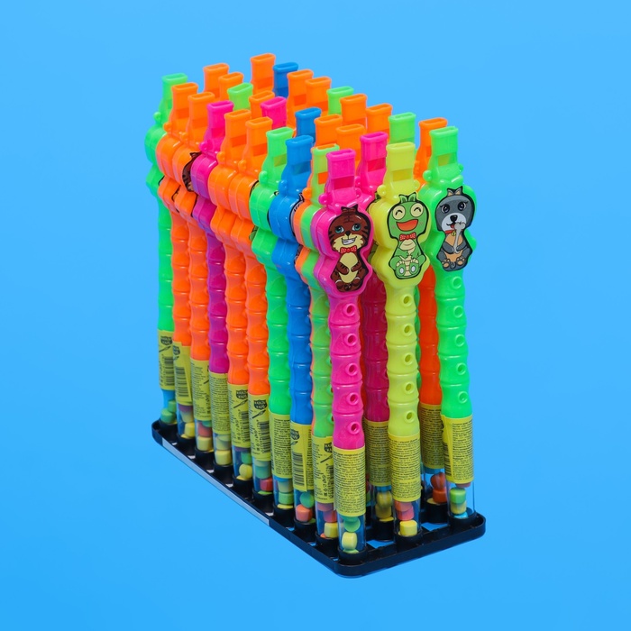 Состав: сахар, глюкозный сироп, регуляторы кислотности (лимонная кислота, молочная кислота), концентрированная фруктовая паста (концентрированный сок из яблок, апельсинов, лайма ананаса, лимона, вишни, черники, арбуза, ежевики; пюре из яблок, клубники, персика, малины, банана, манго, киви), ароматизатор, краситель (куркумин). Может содержать следы молока.