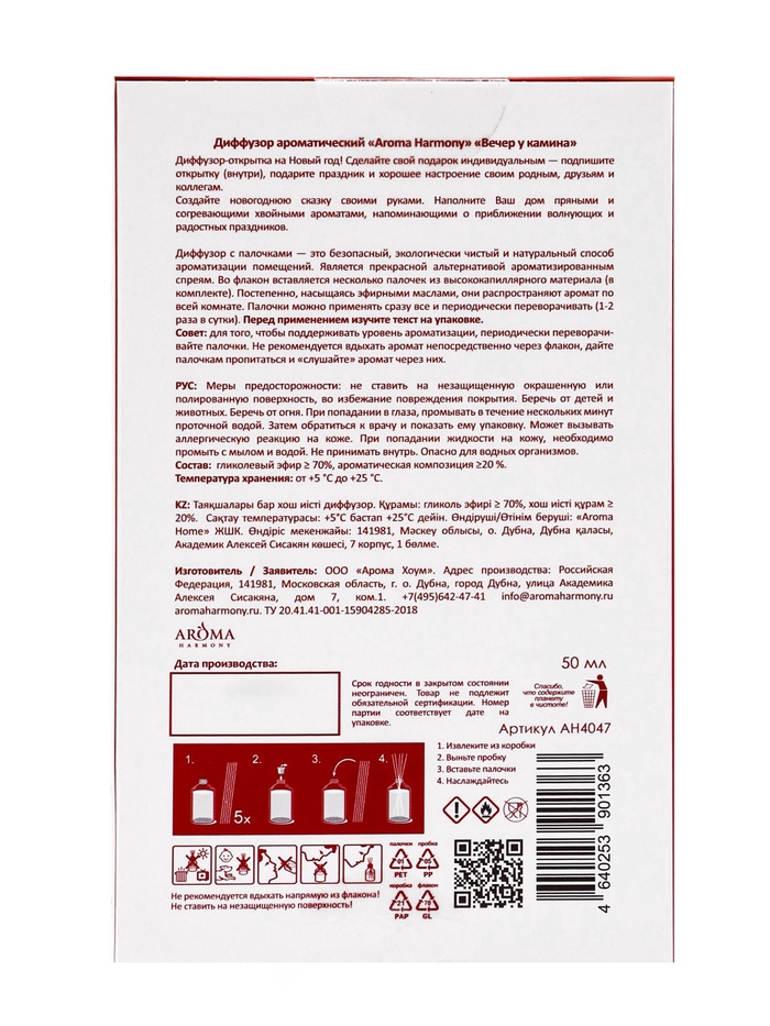 Элегантный флакон и праздничная открытка в комплекте делают диффузор идеальным подарком к Новому году или Рождеству. Он наполнит ваш дом атмосферой праздника, тепла и гармонии, создавая настроение, в котором хочется отдыхать, наслаждаться моментом и делиться уютом с близкими.