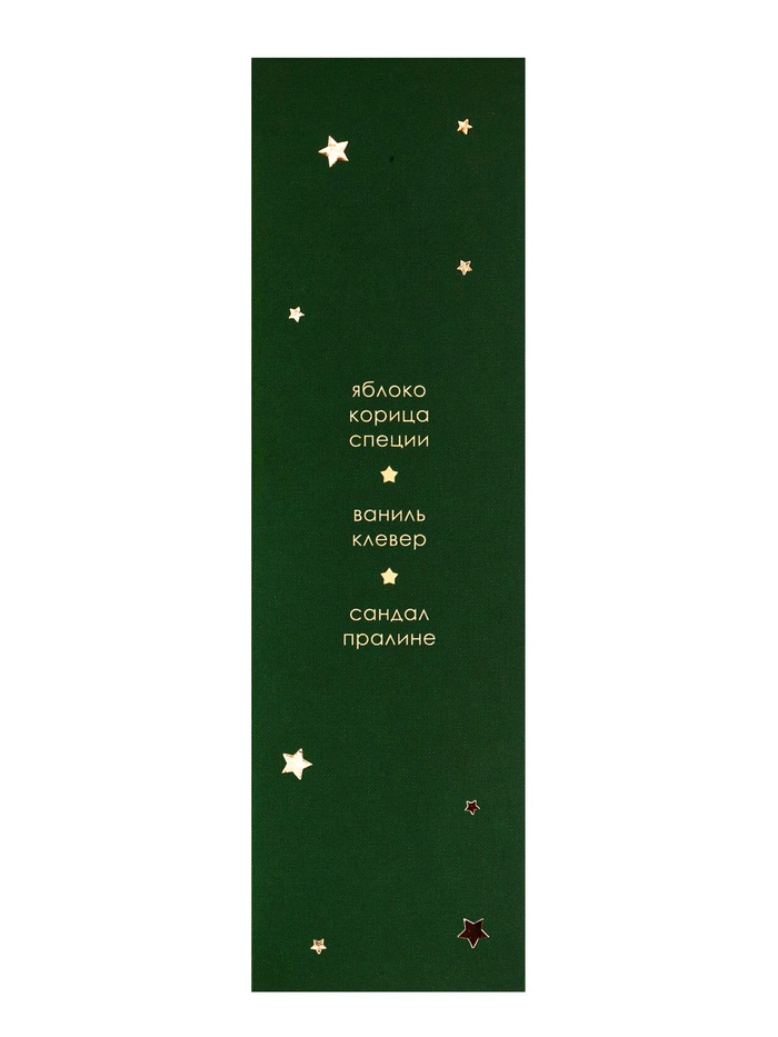 С первых мгновений раскрываются сочные нотки спелого яблока, корицы и мягких пряностей, которые наполняют помещение бодрящей и праздничной свежестью. В сердце композиции звучат ваниль и клевер, создавая сладкий и слегка пряный аромат, вызывающий ощущение комфорта и радости. Завершает букет теплый шлейф сандала и пралине, оставляющий мягкое, обволакивающее послевкусие, словно уютный плед и чашка горячего напитка в холодный вечер.
