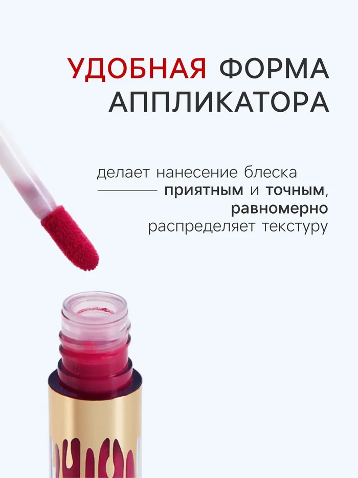 - Универсальный продукт, который можно использовать как самостоятельное средство или наносить поверх любимой помады для дополнительного блеска.