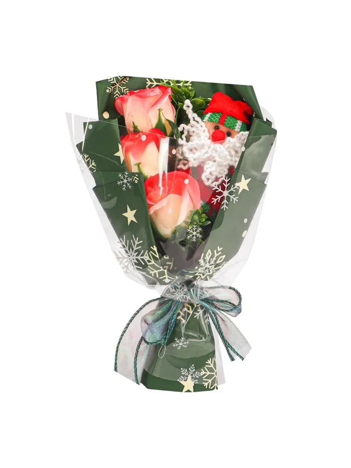 Подарите своим близким кусочек праздничного волшебства с нашим новогодним букетом мыльных красных роз, дополненным фигуркой Деда Мороза. Этот уникальный букет станет ярким акцентом любого праздничного декора и отличным подарком, который сочетает красоту и праздничное настроение.