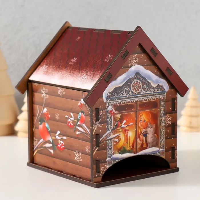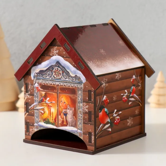 Новогодний чайный домик "Чудеса в окошке" 10,5х9,5х12 см