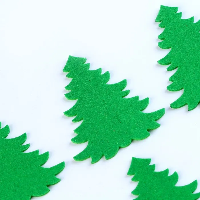 - Размер фигурки составляет 6 × 5 см, а толщина — 2 мм. Компактные габариты позволяют использовать ёлочки для декорирования открыток, подарочной упаковки и аппликаций.