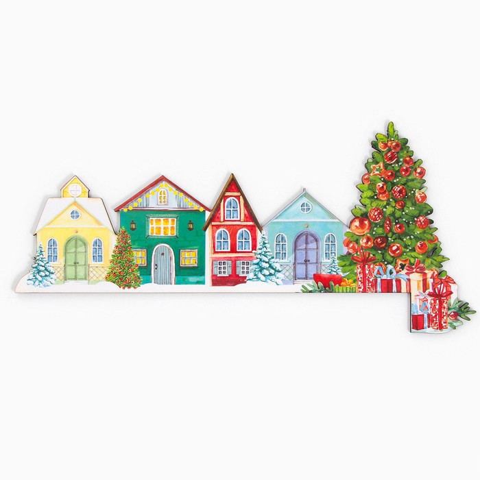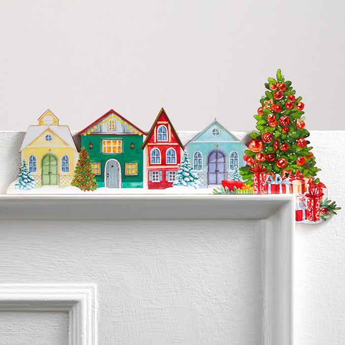 Новогодний декор на раму двери «Домики», 25,5 х 11,8 см