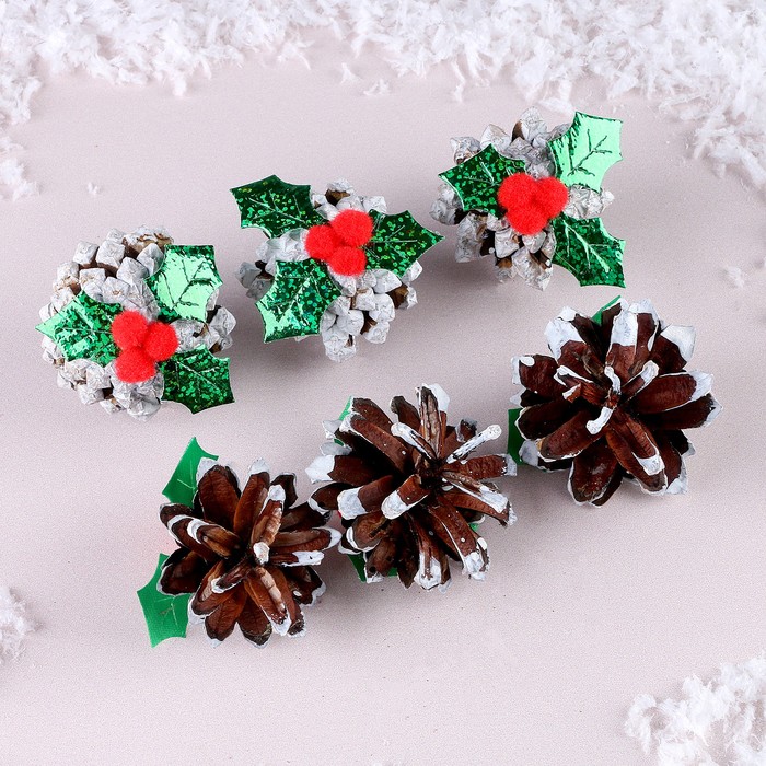 Новогодний декор «Шишка-ягодка», 6 шт.