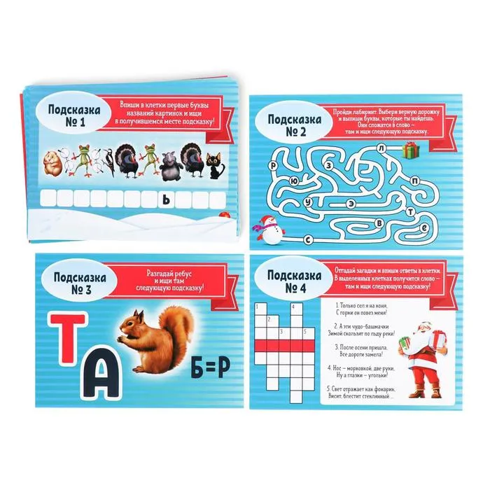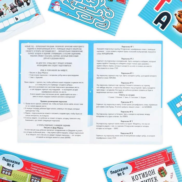 Всё, что нужно, — это правильно положить подсказки. Положите их в книги, обувь, спрячьте за часами и в других местах вашей квартиры. Следуйте правилам, и у вас всё получится!